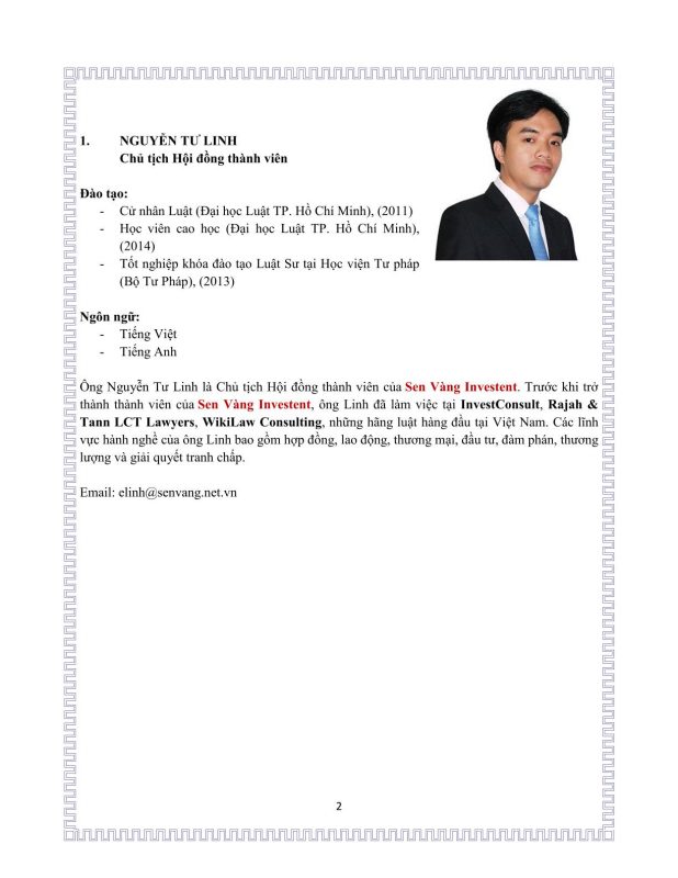 NHÂN SỰ – SEN VÀNG INVESTMENT
